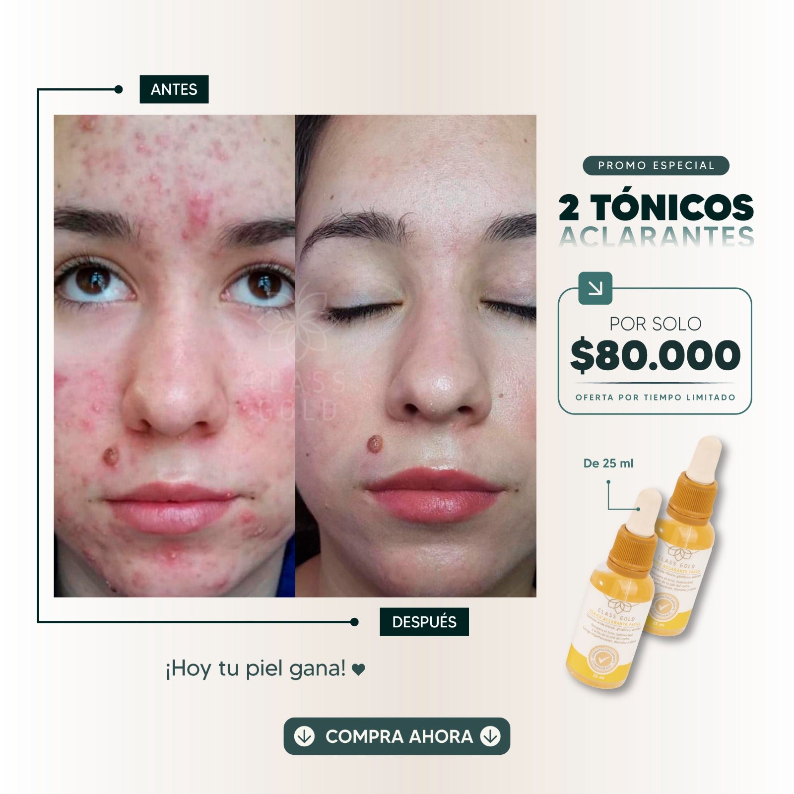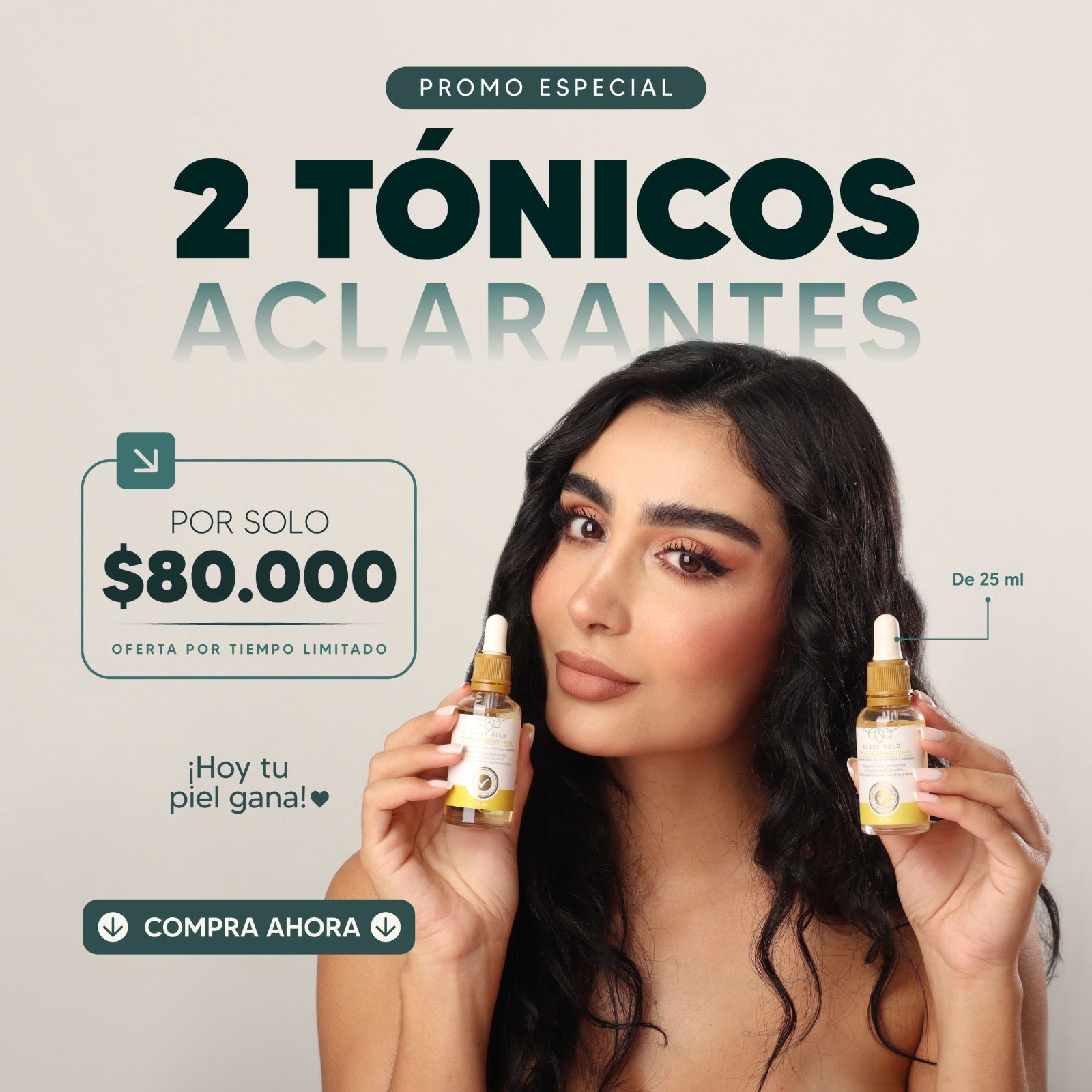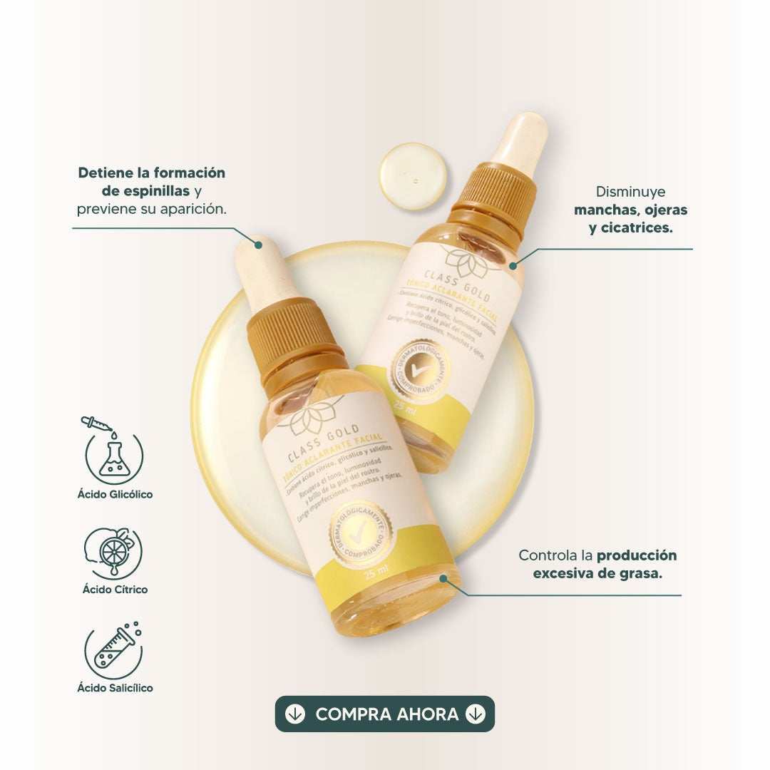 Incluye 2 tónicos aclarantes de 25 ml, formulados para el cuidado diario de la piel.